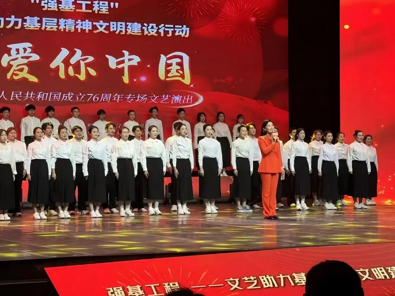 活动中,团员青年们观看了由哈尔滨市委宣传部、哈尔滨市文学艺术界联合主办的 “强基工程” 文艺助力基层精神文明建设行动专场文艺演出。演出在童声合唱《我爱你中国》中拉开帷幕,纯净童声传递出对祖国的真挚热爱;胡乐民带来演诵《可爱的中国》,声情并茂,尽显对祖国的深情眷恋;歌伴舞《追随》用优美舞姿与动人歌声,诠释对祖国的坚定追随;还有《向母亲敬礼》的深情演诵、《有我》的活力舞蹈等十四个节目依次呈现,形式丰富多样,每一个节目都饱含着对祖国的赞美与祝福。