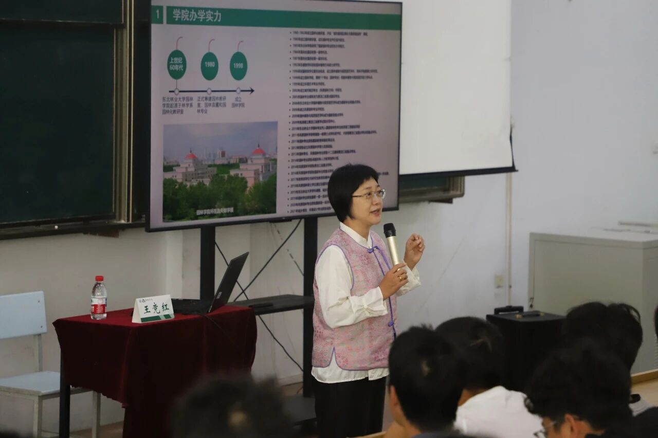 9月25日上午,学院院长王竞红在逸夫楼101教室以“时代背景下风景园林教育创新的困惑与解析”为题目开启了本次交流分享。王院长以园林学院的历史为脉络,带大家回溯了学院从初创到发展壮大的峥嵘岁月,向大家展示了我院在教育教学理念上的创新举措、特色做法,让新生们对学院的底蕴有了深刻认知。同时,王院长还重点解读了学院近年来的保研政策与就业前景。院长的分享在热烈的掌声中画上句号,同学们也对院史院情、学院特色、专业发展有了很明确的努力方向,“园宝”们也纷纷表示会筑牢成长根基,在园林的沃土上绽放青春、茁壮成长,为中国式现代化建设贡献园林学子的青春力量。