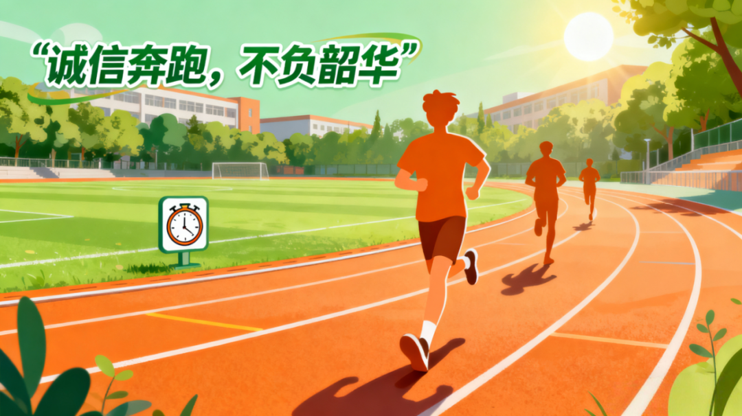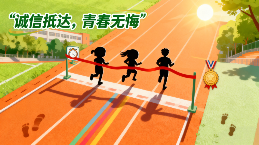 同学们,青春的跑道不应该有作弊的痕迹,成长的路上也不会有投机的捷径。下次当我们再次踏上校园跑道时,试着放慢脚步,感受晚风拂过脸颊的惬意,聆听自己心跳的声音,让每一步都跑得坦荡,让每一次呼吸都充满力量。用诚信当“跑鞋”,用自律当“节奏”,我们才能在“创高”的赛道上,跑出属于自己的独特节奏与人生高度。