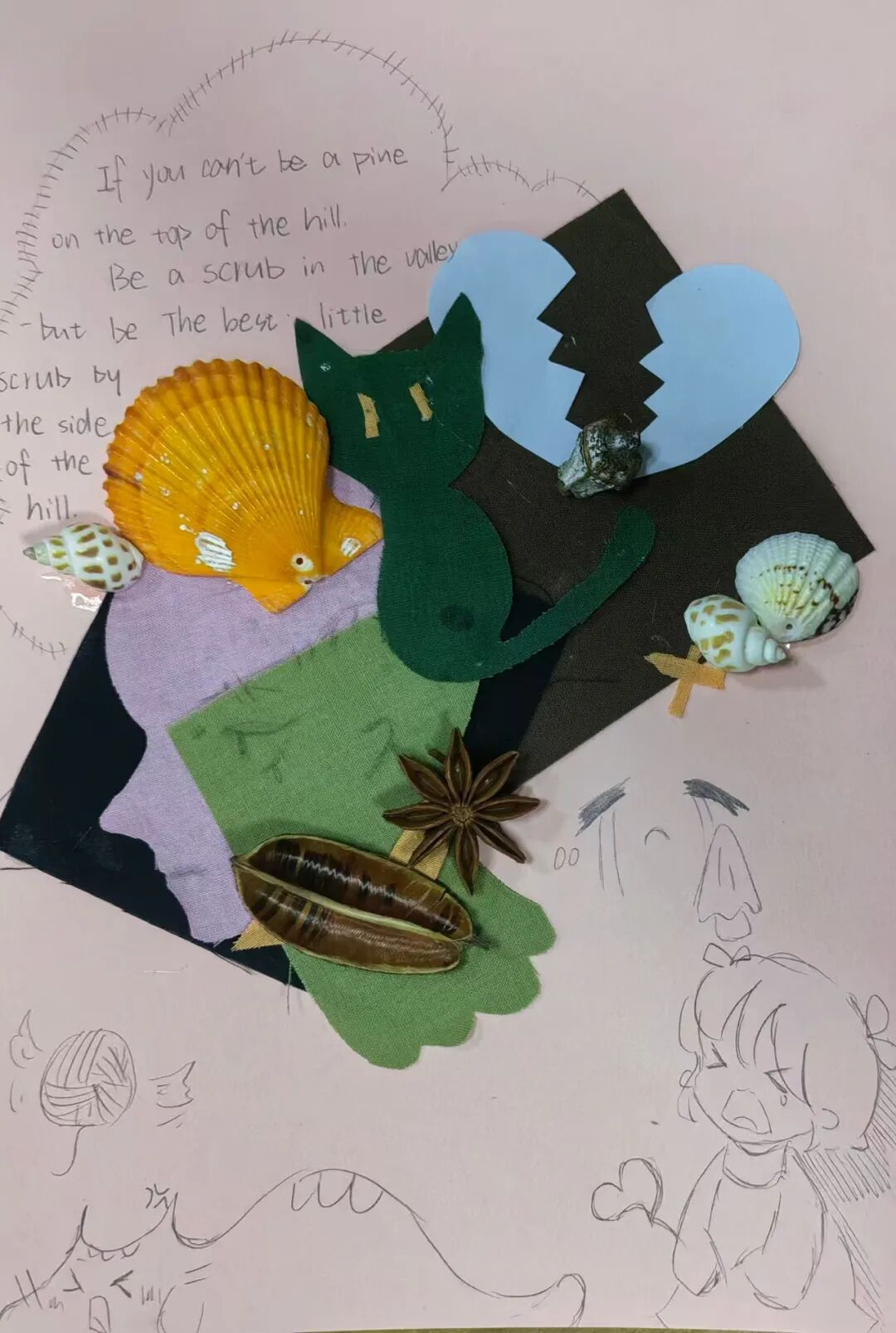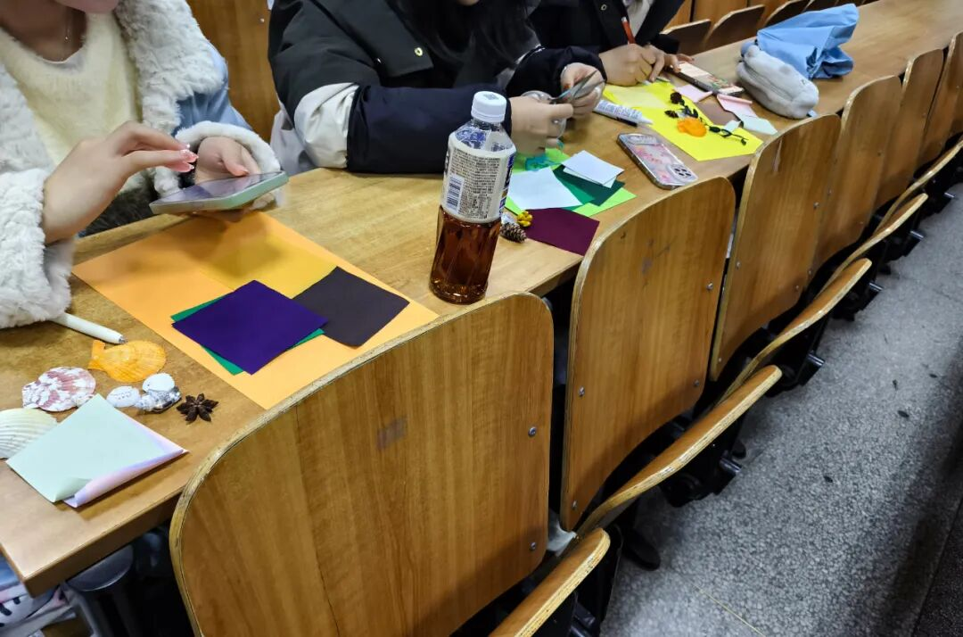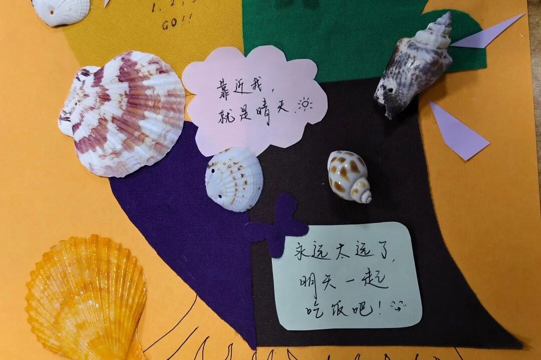 在分享时笑着说 “缠绕的毛线像解开的难题”;