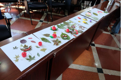 在触觉体验环节,学院准备了由木头、羽毛、棉花等天然材料制成的感官触觉盒,让孩子们触摸并表达感受。随后,孩子们参与黏土制作活动,为树叶添加表情,制作充满童趣的“树叶小怪兽”,在动手过程中增强对自然材质的感知。
