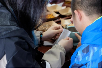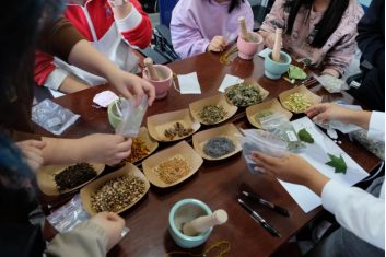 嗅觉体验环节选用了茉莉、薄荷、玫瑰等具有疗愈效果的香料,孩子们识别不同气味,亲手将香料装入香包,制作出属于自己的独特香囊。