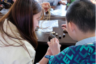 围绕“柔软”这一核心主题,活动针对智力障碍儿童对感官刺激敏感的特点,设计了五种感官体验环节,以温和互动方式激发孩子们对自然的兴趣,达到疗愈身心的效果。在园林学院志愿者的协助下,孩子们分为5个小组,依次参与触觉、嗅觉、视觉、听觉和动觉体验。