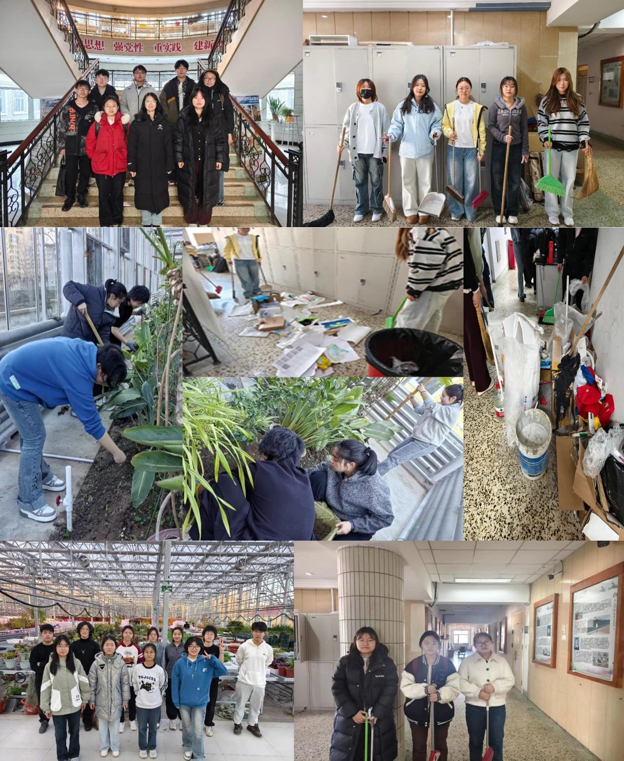 绿化组进入学院苗圃,有序搬运各类花卉苗木200余株,协同老师完成翻土等苗圃打理活动,为春季校园绿化储备生机。清洁组奔赴逸夫楼,对十余间公共教室开展清扫工作:擦净积灰黑板、归置散落书籍,清洁脏污地面。春风裹挟着细密的汗珠,蓝马甲与绿苗圃交相辉映,劳动的热潮让“传承雷锋精神 奉献志愿青春”的青春誓言落地有声。