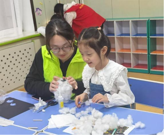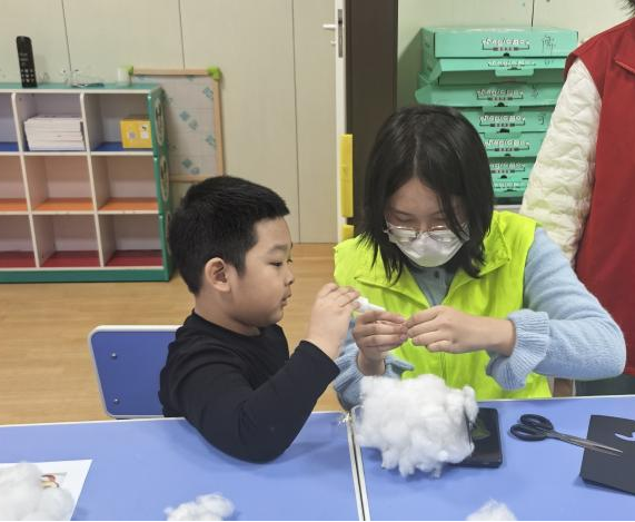 而后利用刚刚学习过的垃圾分类知识和前期收集的空水瓶、旧玩偶,大家和孩子们一起开展了变废为宝手工小课堂,将闲置物品改造为温馨的家居装饰品,不仅赢得孩子们的喜爱,还发挥了绿色智慧,避免了资源的浪费。
