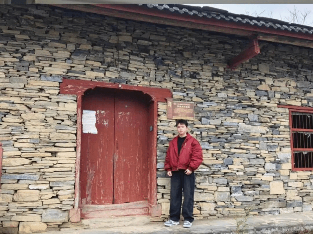 (匡傲与古建石板屋合影)