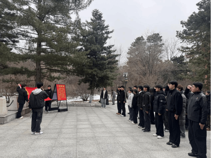 清晨,参与活动的同学们身着统一深色服装,团员佩戴团徽,在指定地点有序集合、统一乘车,怀着无比崇敬的心情奔赴哈尔滨烈士陵园。抵达陵园后,全体人员整队肃立,在陵园工作人员与学院带队老师、团委学生干部的现场组织下,园林学院2026年清明祭扫主题仪式正式拉开帷幕。