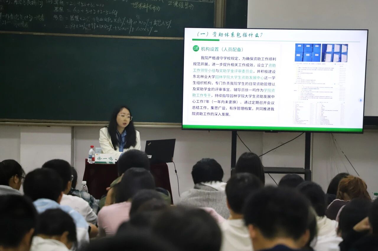 讲解过程中,徐老师围绕新生最关心的资助内容展开,详细介绍了校内各类奖助学金 ,清晰梳理了不同资助类型的申请条件、覆盖范围及核心作用。同时,徐老师还针对资助评 定的具体流程与细则进行说明,用通俗的语言拆解关键环节, 让新生们对 “如何申请奖助学金 ”“如何准备申请材料 ”等有了明确认知 。