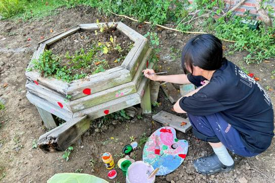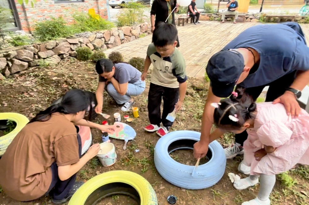 在此次实践过程中,队员们进一步加深了对乡村社区营造与人性化景观设计的理解,增强了以专业知识服务基层健康的责任感与使命感。“从方案设计到实地营建,每一步都充满挑战,但当看到居民在花园中休闲、儿童在轮胎旁涂鸦时,所有疲惫都化为成就感。团队协作的力量、社区居民的支持,是项目成功的关键。” “墙绘绘制时,社区儿童认真填充颜色的样子让我感动 —— 花园不仅是景观,更是连接人与自然、人与人的纽带。” 队长张珂佳这样说道。