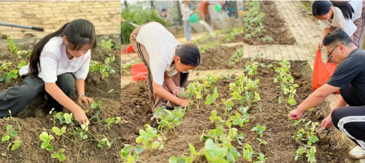 团队始终坚持 “共建共治共享” 理念,全程邀请村民参与花园建设。从最初的场地勘测,队员们与村民一同丈量地块、分析土壤条件;到选苗栽植阶段,结合村民的种植经验选择适配本地气候的植物;再到亲手铺设碎石步道和休闲平台,村民们积极参与其中,贡献智慧与力量。此外,团队还举办多场园艺疗愈体验工作坊,教村民修剪枝叶、制作干花书签,邀请大家共同参与花园的创作与长期维护。花园建成后,已成为村民日常休憩交流、儿童自然教育及田园康养活动的重要场所,真正实现了设计为人、成果惠众、社区共享的初衷,显著增强了村民的归属感和幸福感。
