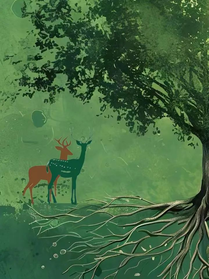 一棵高耸入云的大树,深深的扎根于脚下的土地,它粗壮的枝干向着天空肆意伸展,繁茂的枝叶编织出一片浓荫,森林里的动物依它而生,它们灵活的身影在树叶间若隐若现。这棵大树就像森林的守护者,又似生命的源泉,滋养着林中万物 ,共同谱写着这片森林的生命之歌。