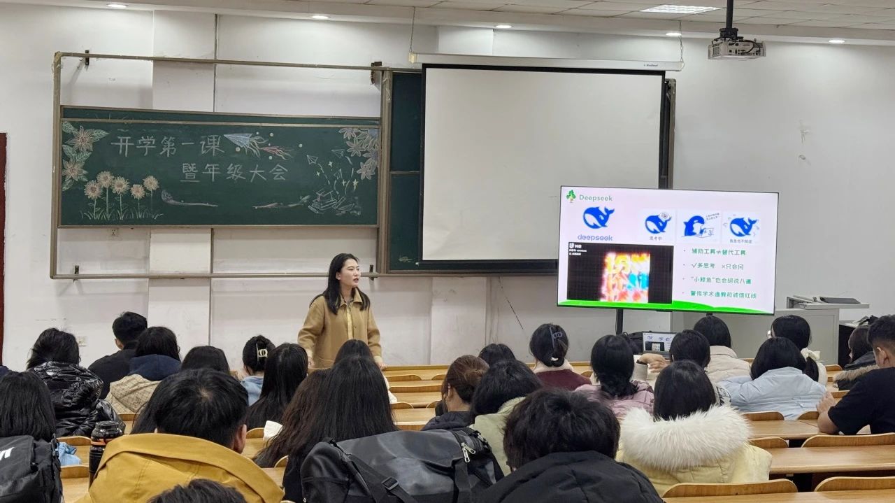 在学术科研与职业规划方面,张老师结合最近deepseek等人工智能技术的崛起,提醒同学们要端正学术态度,恪守学术道德,秉持“以我为主,AI为辅”,以“慢思考”坚守学术诚信。同时,要求全体同学严格遵守请销假制度,在生活中通过科学锻炼强身健体,全面提升自我。会上还就《教育强国建设规划纲要(2024-2035年)》文件精神、透过“两会”看专业发展等内容展开分享与讨论。