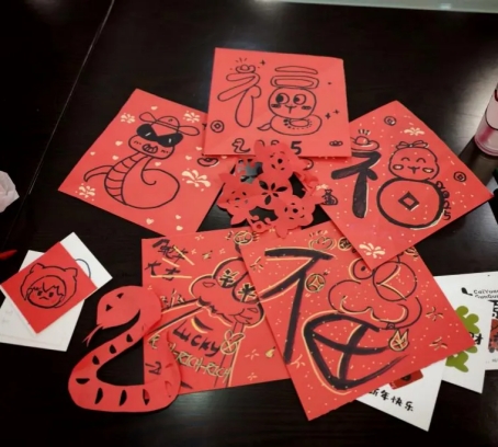 同学们结合蛇年主题,发挥才艺创作出风格多样的蛇年福字。