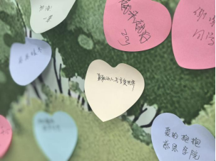 座谈会现场座无虚席,师生之间互动气氛温馨而热烈,老师们为在场的同学们发放了爱心抱枕,同学们脸上洋溢着喜悦的笑容,纷纷表达了对未来的坚定信心和期待,并在爱心便签上留下了对学院和教师们的感激之情以及对未来的美好祝愿。