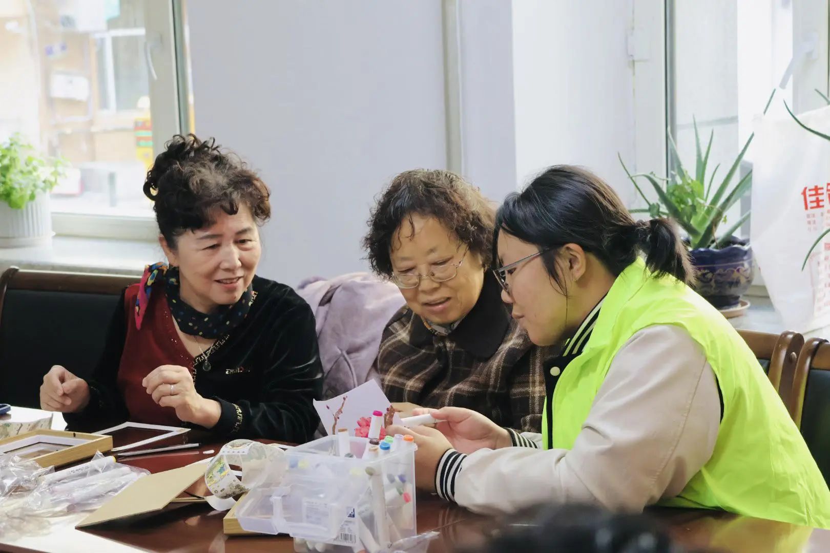 协会一直以来关注支持老年人的精神文化生活,丰富文体活动,促进共同参与。在2024敬老月期间,志愿者们来到抚顺街道办事处,面向老年人组织开展摄影留念活动。社区老年人与工作人员对志愿者的到来表示欢迎,在志愿者的陪同下,老人们运用装饰工具,对相框进行装饰,并沟通交流想法,在志愿者的鼓励下大家纷纷发挥创意,用水彩、彩铅、马克笔等绘制了美丽的花朵进行装饰,过程中其乐融融,结束后大家都得到令人满意的作品。