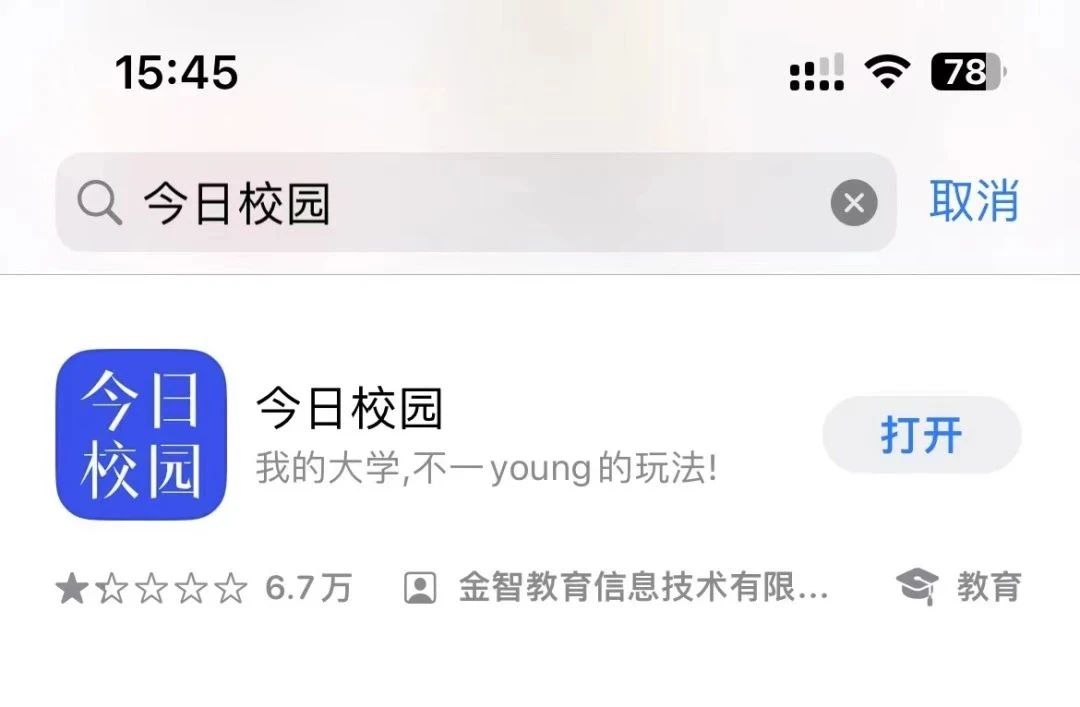 第一步,各位同学们可在手机应用市场搜索“今日校园”,下载“今日校园”手机软件。