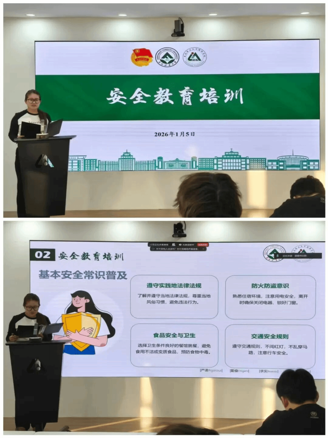 会上还开展了安全教育,普及法律法规、防火防盗、防诈防骗、食品安全和交通安全等基本常识,并介绍了逃生技巧、急救方法和灾害预防等紧急应对措施,重点强调了户外活动安全与财产保护,确保在遇到紧急情况时能快速响应、妥善处理,为本次寒假“返家乡”社会实践活动筑牢安全防线。