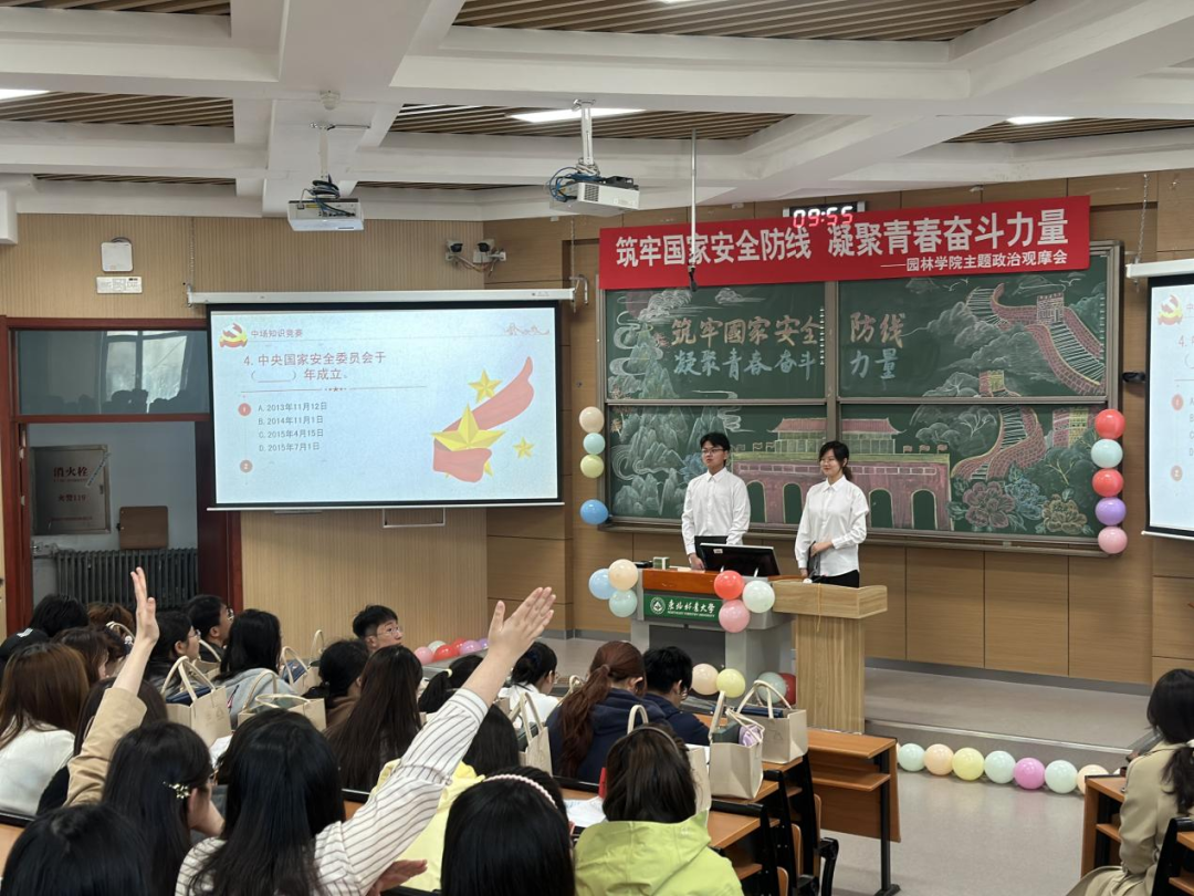 为进一步贯彻落实新时代国家安全理念,引导东林青年增强国家安全意识,培养自身责任感、使命感,为筑牢国家安全防线贡献东林青年力量。园林学院于2025年4月19日在锦绣楼T101隆重举办了“筑牢国家安全防线,凝聚青春奋斗力量”政治理论学习观摩会。园林学院2024级本科生辅导员尹梓阳老师及全体2024级本科生参加了本次政治理论学习观摩会。