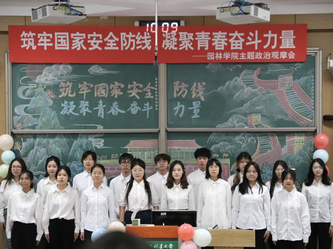 筑安全屏障承重任,扬青春风帆赴新程。此次政治理论学习观摩会,不仅是思想的淬炼,更是一场绿色使命与安全责任的双重接力。园林学院的学子们在国家安全教育的浸润中深刻领悟到,生态安全是国家安全的重要屏障,个人理想追求与生态文明建设、国家安全战略紧密相连。未来,他们将以专业所学为刃,以青春热忱为盾,在生态保护、园林建设的实践中筑牢安全防线,用智慧与汗水守护祖国的绿水青山。把个人成长融入维护国家安全的伟大事业,让青春在守护生态安全、推动绿色发展、捍卫国家安全的征程中绽放绚丽之花,为筑牢生态安全屏障、织密国家安全网络、绘就人与自然和谐共生的壮美蓝图贡献磅礴力量,携手奔赴生态文明建设与国家安全发展的崭新未来。
