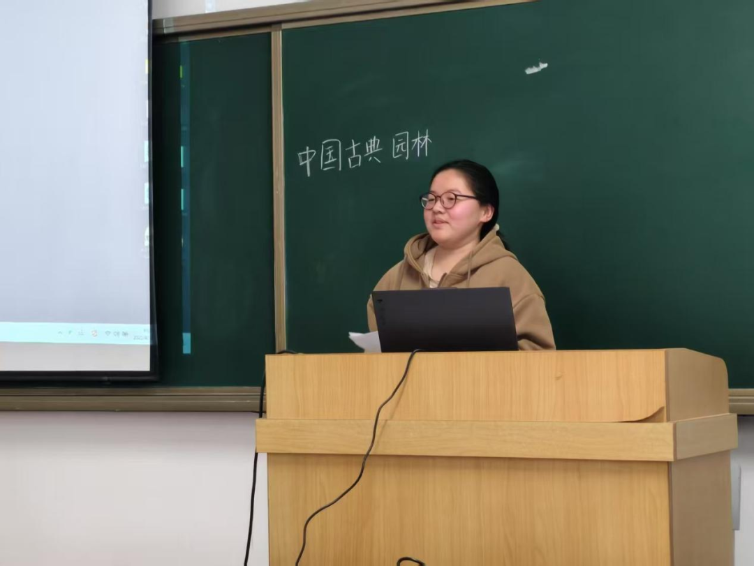 耿慧婧同学以饱满的热情、详实的讲解,带我们穿越千年时光长河。从江南园林的曲径通幽到皇家苑囿的恢弘大气,她用生动的语言揭开每一处叠山理水、飞檐斗拱背后的匠心巧思,让我们真切领略中国古典园林藏于砖瓦草木间的诗意与东方美学的独特魅力。