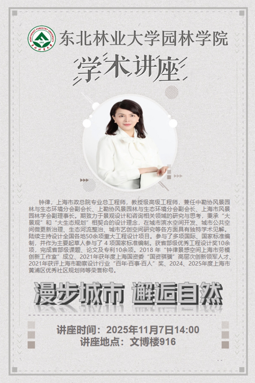 讲座题目:漫步城市 邂逅自然