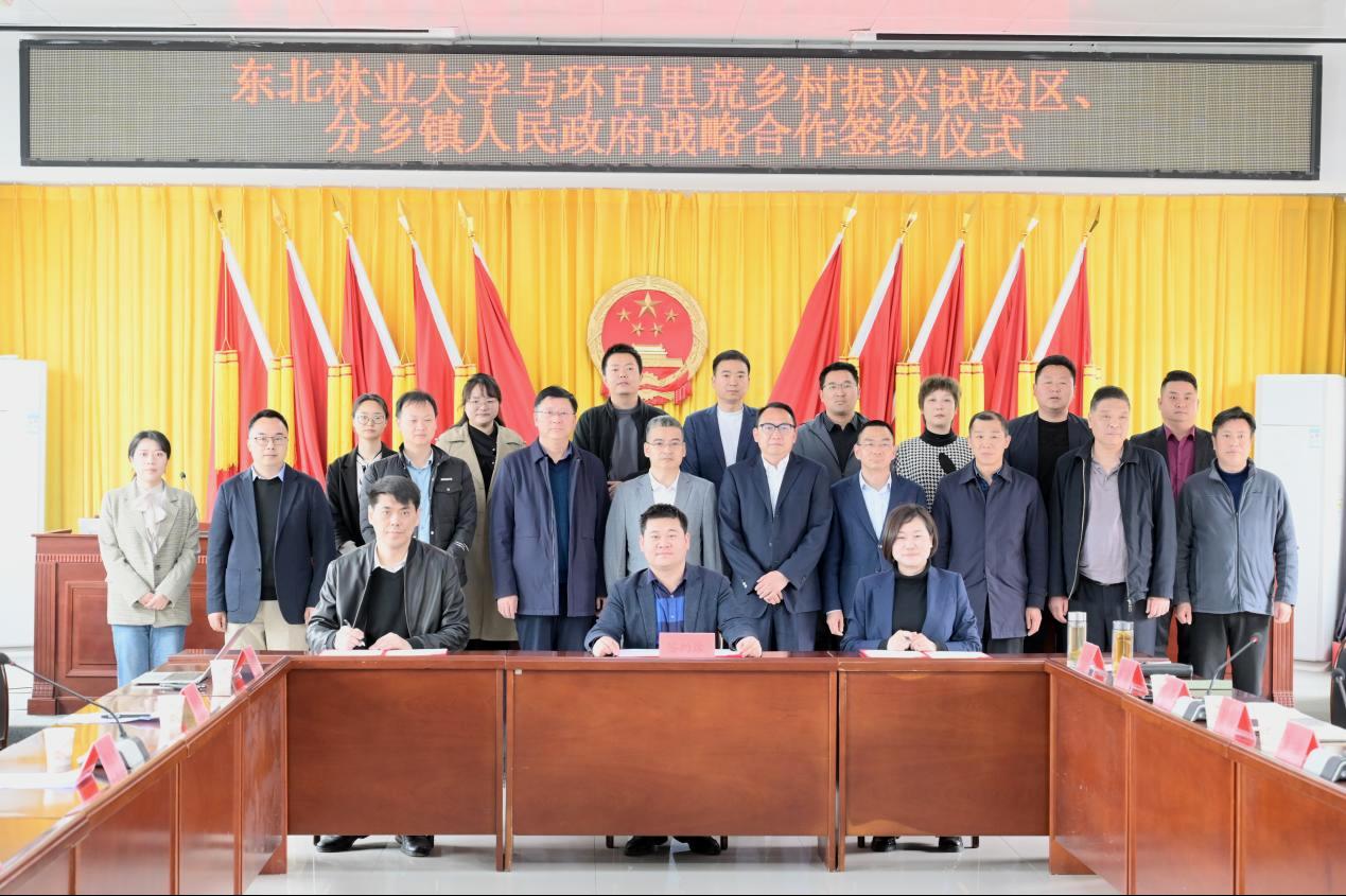 为深入贯彻落实习近平总书记关于全面推进乡村振兴的一系列重要论述和给全国涉农高校书记校长和专家代表的重要回信精神,推动我校专业学位研究生创新创业实践教学改革,引导广大青年走进基层以创新创业助力乡村振兴与生态文明建设,我校与湖北省宜昌环百里荒乡村振兴试验区(2022年荣获生态环境部第六批国家生态文明建设示范区及“绿水青山就是金山银山”实践创新基地)和分乡镇人民政府于3月30在宜昌市分乡镇人民政府举行“东北林业大学乡村振兴与绿色低碳协同创新研究生创新实践基地”和“‘两山’理论转化研究生创新实践基地”签约和揭牌仪式。园林学院党委书记赵新勇、研究生院副院长王新政、园林学院副教授兼基地负责人胡远东、宜昌市夷陵区及分乡镇有关领导同志出席揭牌仪式。