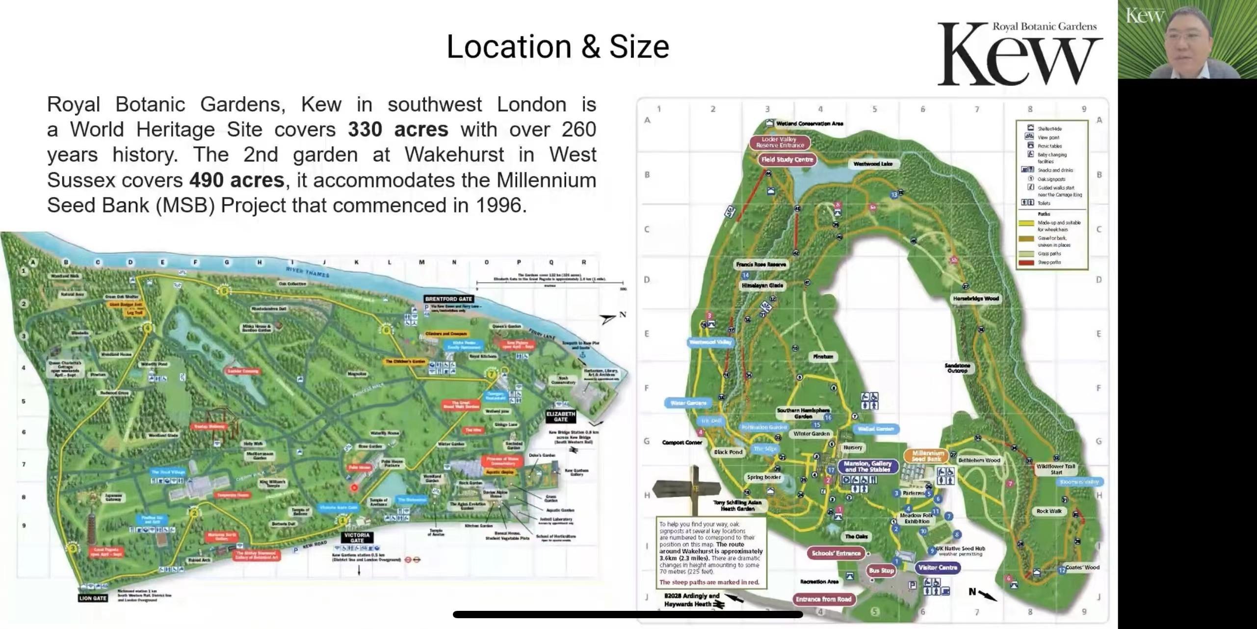 会上,方博士介绍了邱园的发展历史、国际学术影响力,以及其丰富的馆藏资源和园艺植物资源(包括标本馆和千年种子库项目)。还介绍了目前邱园学科建设、战略部署,并且举例不同科研团队正在从事的国际合作项目和一些最新的科研进展。