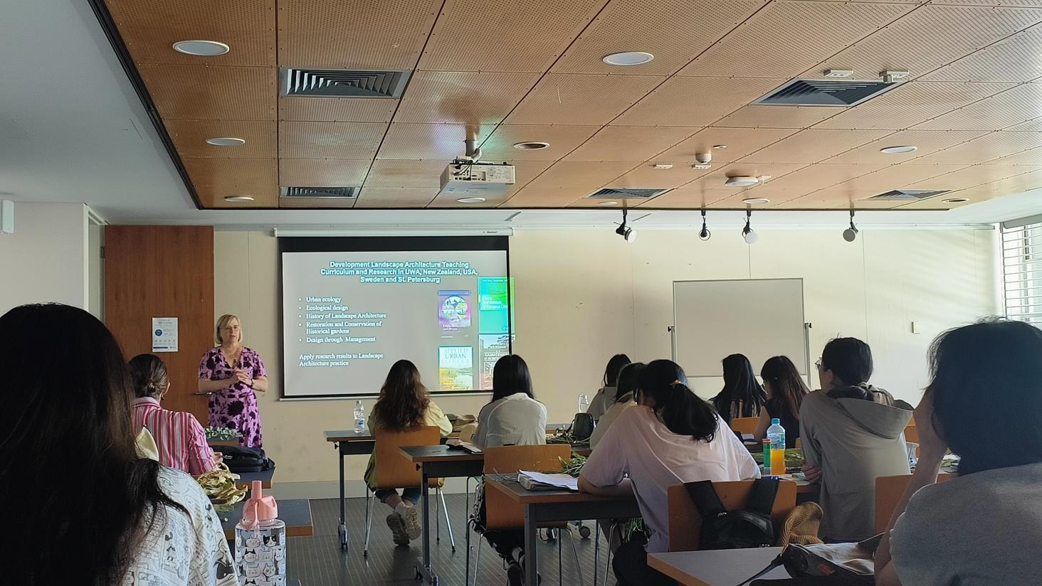 在学习之旅中,西澳大学的专家学者们为访学师生带来了多场学术讲座,内容涉及澳大利亚植物景观设计、生态设计与生态修复、生物多样性保护与恢复等多个领域,这些高质量的学术报告拓宽了学生们的学术视野和知识广度。