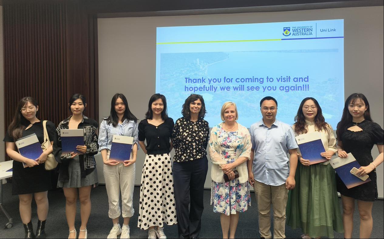 1月25日上午,西澳大学设计学院院长Kate教授、国际访学中心负责人以及全体授课教师和相关部门的工作人员参加了课程结业仪式,Kate教授为每位学生颁发证书并与同学们一一合影留念。参加本次访学的同学赵聪聪在结业仪式上作为师生代表发言,感谢我院为同学们提供了一个难忘的假期学习和体验机会,帮助他们不仅拓宽了视野,增长了知识,提升了综合素质,同时感谢西澳大学设计学院的全体授课教师,让他们获得了全新的学术和社交体验,加深了对西澳洲的文化、历史和自然环境的了解,并提高了同学们的英语应用能力和跨文化交流能力。