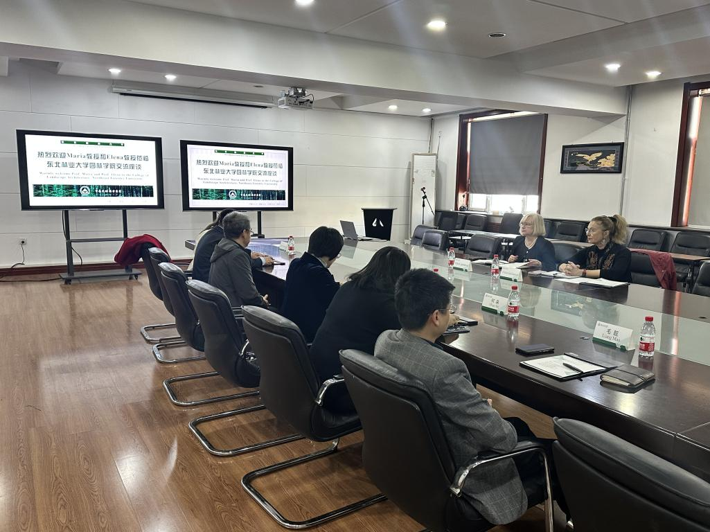 2025年4月23日上午,俄罗斯自然科学院院士Elena Golosova教授与澳大利亚西澳大学设计学院Maria Ignatieva教授一行来访园林学院,与学院领导和教师代表就学术前沿与未来国际合作开展对话交流。