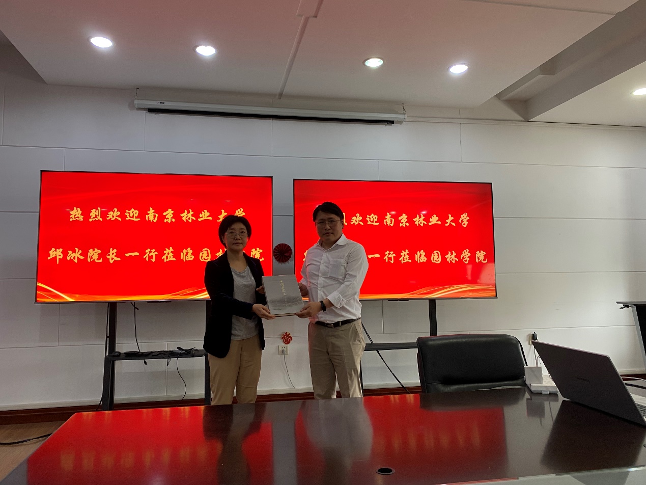 座谈会后,王竞红院长与邱冰院长互赠书籍。以此次座谈为契机,双方共谋合作,共同助推风景园林学科建设,促进双方互利共赢。