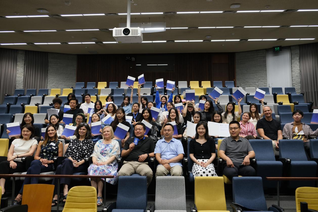 1月25日上午,西澳大学设计学院院长Kate教授、国际访学中心负责人以及全体授课教师和相关部门的工作人员参加了课程结业仪式,Kate教授为每位学生颁发证书并与同学们一一合影留念。参加本次访学的同学赵聪聪在结业仪式上作为师生代表发言,感谢我院为同学们提供了一个难忘的假期学习和体验机会,帮助他们不仅拓宽了视野,增长了知识,提升了综合素质,同时感谢西澳大学设计学院的全体授课教师,让他们获得了全新的学术和社交体验,加深了对西澳洲的文化、历史和自然环境的了解,并提高了同学们的英语应用能力和跨文化交流能力。