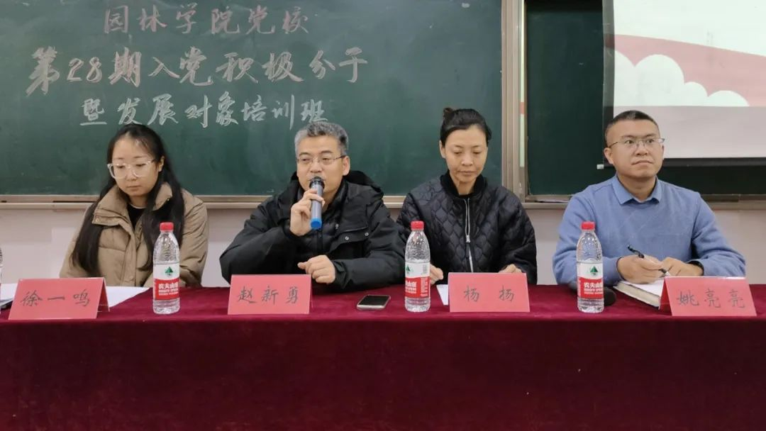 开班式上,赵新勇书记表示,希望参加此次培训班的全体学员能够有所收获,争取早日成为一名中共党员。学院党委副书记、副院长杨扬老师宣读培训班教学和管理的有关规定,鼓励学员脚踏实地,严肃认真对待每一节课。2020级园林2班庄舒尧代表全体学员发言,号召同学们认真学习,踊跃实践,以优异的成绩完成课程结业,进一步向党组织靠拢。