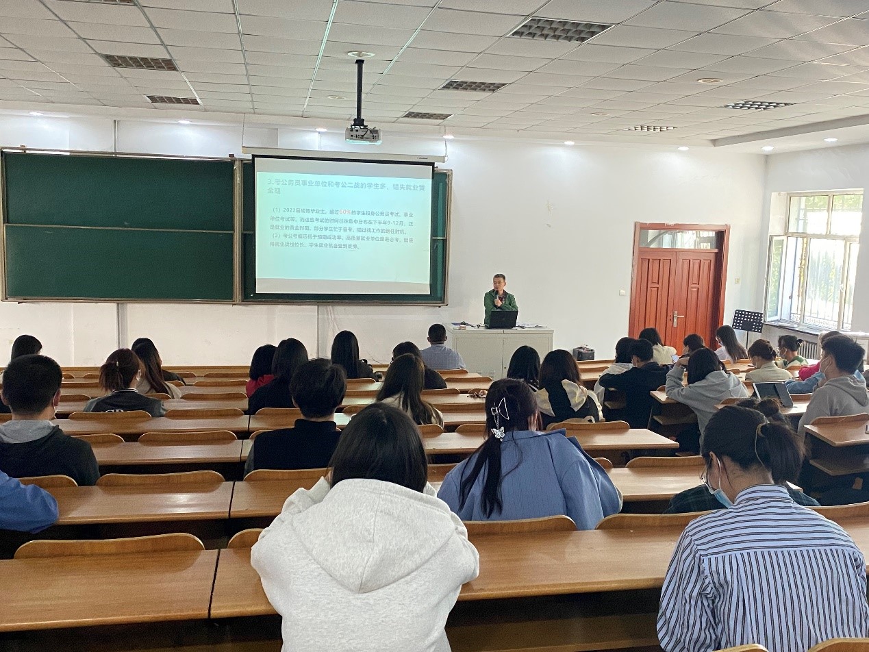 为进一步落实学校关于加强毕业生就业工作的决策部署,扎实推进2023届硕博毕业生就业工作,提前谋划2024届硕博毕业生就业事宜,帮助学生了解就业形势、明确就业方向,在做好疫情防控工作的前提下,9月20日下午14:00,园林学院组织召开了2023届硕博毕业生就业动员会,会议以线上线下相结合的方式进行,分别在逸夫楼T101教室和431学术报告厅设分会场,学院党委书记赵新勇老师、副书记副院长杨扬老师和2023届、2024届毕业生一同与会,会议由学院团委书记、研究生辅导员姚亮亮老师主持。