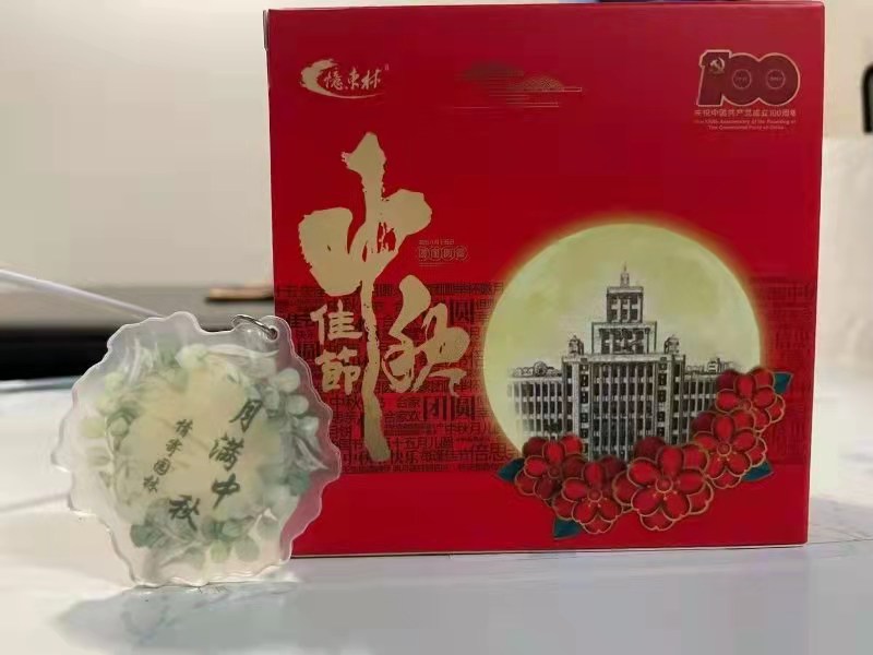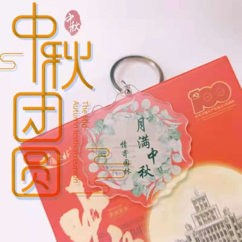 情寄园林,月满中秋与象征园林学院的葱然绿意装饰的钥匙扣,是园林学院给同学们邮寄的“月色”。