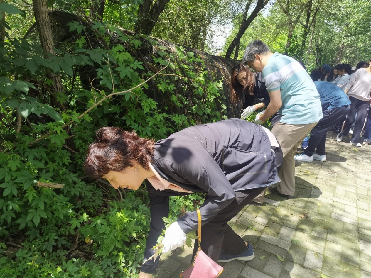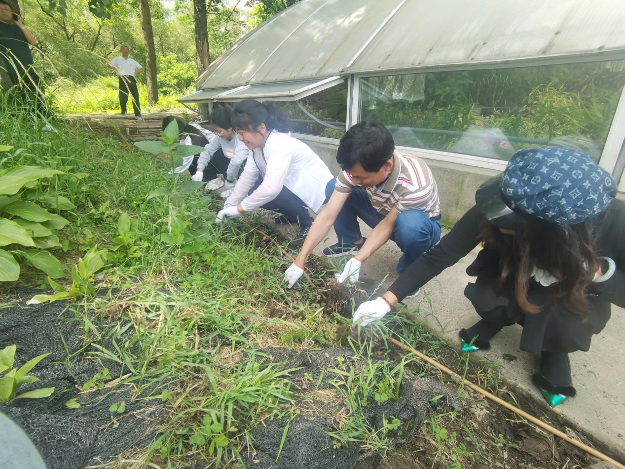 园林学院领导班子与园林植物教工党支部、学生第一党支部成员共同来到学院苗圃实践教学基地,领导班子成员和教工党支部成员以身作则,除草护花,并在活动过程中开展实地教学。教师带动学生识别植物,将教学实践与劳动实践相结合,不仅为学生提供了一次良好的课堂实践的机会,更美化了实践教学基地的环境。同学们在这节师生交流互动的实践课堂上既收获了理论知识,又生动地将专业理论知识运用到实践劳动中。