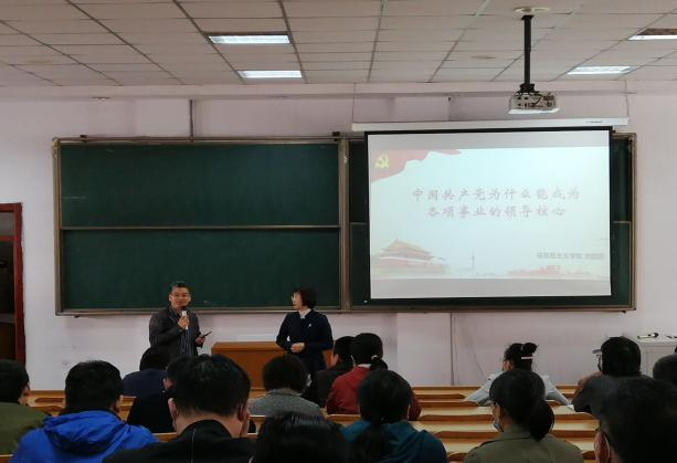 刘甜甜老师分别从“科学的理论指导、坚定的理想信念、强大的组织优势、坚实的群众基础、彻底的自我革命”五个方面对“中国共产党为什么能成为各项事业的领导核心”这一主题进行了科学、深刻的探讨、分析。