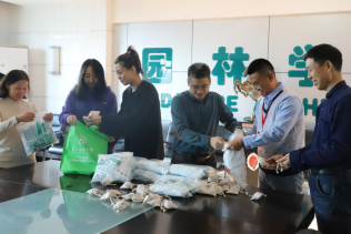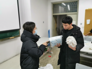 11月26日中午,园林学院党委书记赵新勇、党委副书记副院长吴晓红、工会主席栗辉以及全体辅导员老师,在逸夫楼525会议室为学院1322名在校学生分装口罩、中药香囊等防疫物资。