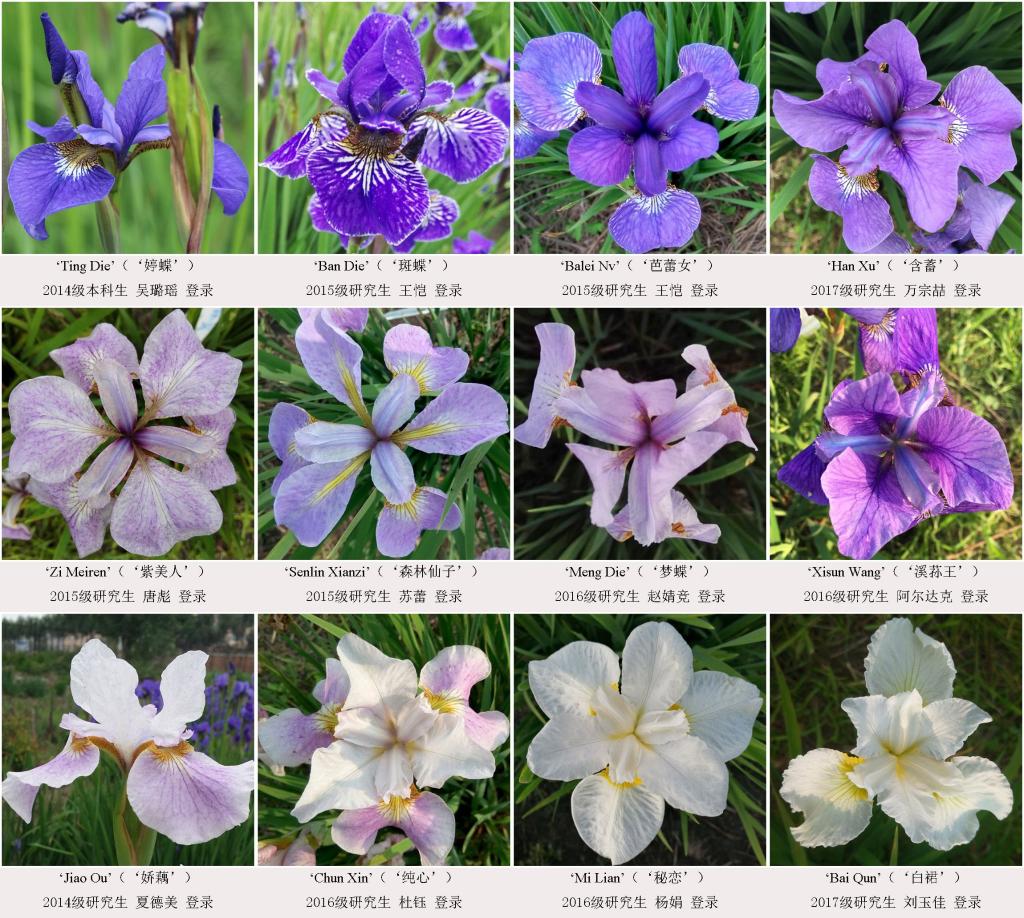 十几年来,东北林业大学园林学院王玲教授课题组一直从事鸢尾属植物基础及应用研究,在溪荪鸢尾新品种培育研究中成果丰富,截止2018年底,已在美国鸢尾协会国际登录新品种15个。这些优良品种,分别从花形或花色等形态方面具有独特的观赏性,根据国际栽培品种命名法规,将这些特殊花形或花色的溪荪品种分别命名为‘娇藕’(Iris sanguninea ‘Beautiful Lotus’)、‘斑蝶’(Iris sanguninea ‘Ban Die’)、‘芭蕾女’(Iris sanguninea ‘Balei Nv’)、‘森林仙子’(Iris sanguninea ‘Forest Fairy’)、‘纯心’(Iris sanguninea ‘Chun Xin’)、‘梦蝶’(Iris sanguninea ‘Dream of the Butterfly’ )、‘迷恋’(Iris sanguninea ‘Mi Lian’)、‘白裙’(Iris sanguninea ‘White Skirt’)等,并且在《园艺学报》、《HORTSCIENCE》等国内外期刊上发表。