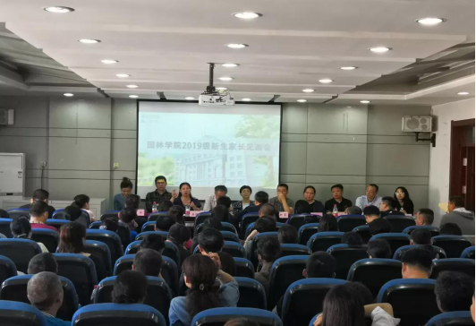 会议伊始,赵新勇书记首先对各位2019级新生家长表示热烈欢迎。紧接着,学院院长王竞红详细介绍了学院的总体情况及专业发展情况,许大为教授细致讲述了风景园林学科的研究和就业方向,学院党委副书记、副院长吴晓红重点解读了我院本科生教育管理工作。随后,与会的各位家长纷纷就关心的专业发展前景、学科优势、考研保研、奖助学金等问题与老师们进行交流,老师们一一耐心解答。