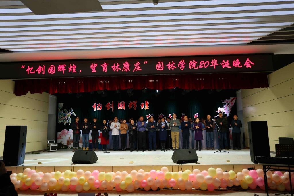 “忆创园辉煌·望育林康庄”为主题的园林学院20华诞晚会现场