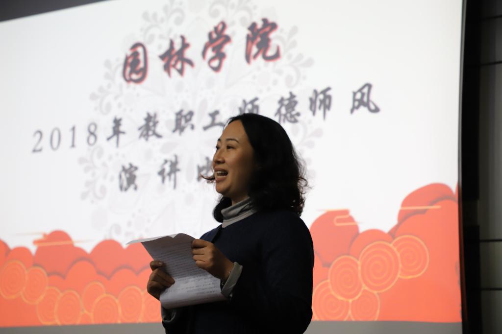 为深入贯彻全国教育大会精神,弘扬新时代高校教师道德风尚,进一步推进我院师德师风建设,努力建设一支有理想信念、有道德情操、有扎实学识、有仁爱之心的教师队伍,11月21日下午14:00,园林学院在新逸夫楼431学术报告厅,成功举办了2018年教职工师德师风演讲比赛。