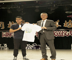 2018毕业生代表向学院赠送毕业礼物 许大为院长向毕业生代表赠送2018纪念T恤