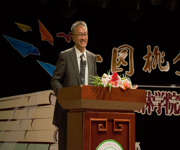 学生家长代表朱成华先生向毕业生们表达了真挚的祝福,向东林老师们致以衷心的感谢,并讲到:“希望全体毕业生树立正确的人生目标,不断进取,牢记自己是东林学子,以天下为己任,为国家、民族做出更大贡献,让世界知晓东林学子的风采!”