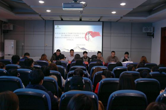 为全面贯彻党的十九大会议精神和习近平新时代中国特色社会主义思想,帮助青年学生端正入党动机。10月31日12:00,中共东北林业大学园林学院委员会党校在新逸夫楼431会议室举行了第十五期入党积极分子培训班暨新时代中国特色社会主义思想培训班开班仪式。出席本次开班式的有学院党委副书记、副院长张艳波,各年级辅导员及参加本次入党积极分子培训班的全体学员,开班式由本次入党积极分子培训班班主任孙海博主持。