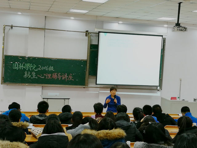 2016年10月26日下午3时,园林学院2016级新生心理健康专题教育讲座在逸夫教学楼T101拉开帷幕。本次讲座由我校党委学工部心理健康教育中心钱淑红老师担任主讲,学院2016级新生参加了本次讲座。