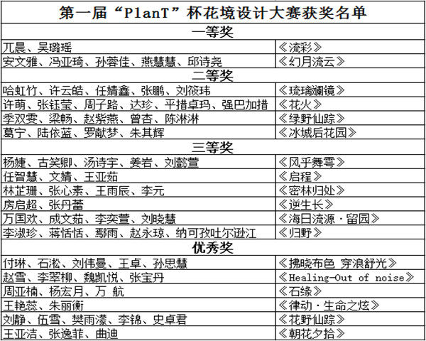 近日,由黑龙江省林学会主办,东北林业大学园林学院、东北林业大学植物景观设计研究中心、东北林业大学Plan T社团承办的第一届“Plan T”杯花境设计大赛圆满落下帷幕。承办本次大赛的“Plan T”植物景观社团成立于2015年12月,旨在构建培养学生层面的植物景观设计研究与创新能力的平台与场所,以激发学生的学习热情,提高本专业学生的专业技能和综合素质,提升、拓展所有同学植物景观的知识、认知能力,曾组织过东北林业大学园林学院相关师生参加唐山世界园艺博览会国际花境景观大学生设计竞赛,并组织过多场交流报告会,经验丰富。此次竞赛名称的命名是为祝贺“PlanT”植物景观社团成立。本次大赛共历时两个月,参赛人员达130余人。