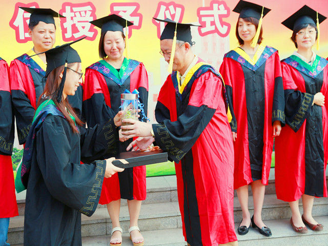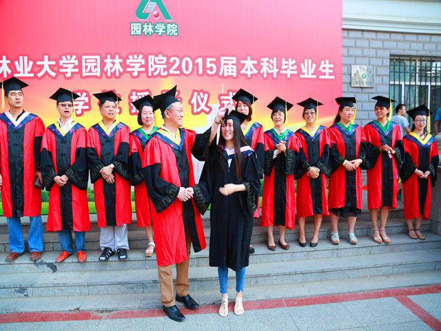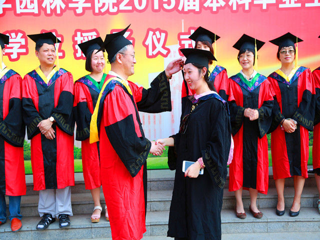 学位授予仪式在雄壮的国歌中开始,园林学院党委副书记、副院长张艳波宣读了获得2014届东北林业大学优秀毕业生称号的学生名单,并由学院领导和教师为获奖学生颁奖。院长许大为亲自为每一名完成学业的园林学子授予学位,拨转流苏,将整个学位授予仪式推向了高潮。