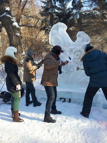 本届冰雕比赛由省文化厅、省文联主办,省艺术设计协会、哈尔滨冰灯艺术博览中心承办,以“继承、发展、创新”和“托起明天的人生”为主题,共有来自哈尔滨、大庆、齐齐哈尔、牡丹江、绥化等省内20余所高校的65支代表队、350多名选手参加了冰雕竞技。园林学子不畏零下二三十摄氏度的严寒,挥刀弄铲,众志成城,以独具匠心的设计思维和巧夺天工的精湛技艺,生动展现了冰雕艺术的魅力。