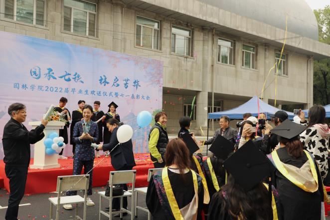 六月离别季,亦是启程时。正逢建校七十周年之际,为进一步增强毕业生离校前教育,引领园林学子感受母校的七秩光辉历程,激发毕业生的爱校荣校之情。6月6日上午,园林学院举办2022届毕业生欢送仪式暨“七一”表彰大会,主会场设在逸夫教学楼前广场,通过腾讯会议同步线上直播。学院党政领导班子、各专业负责人、教师代表、全体辅导员及2022届毕业生出席了本次会议,会议由2022届本科毕业年级辅导员王正宇主持。